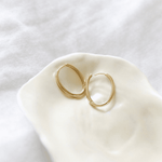 Classic for a reason, an every day hoop, in a perfect vintage toned gold. Perfectly imperfect organic oval shape with a secure lever back closure. Effortless yet transformative.