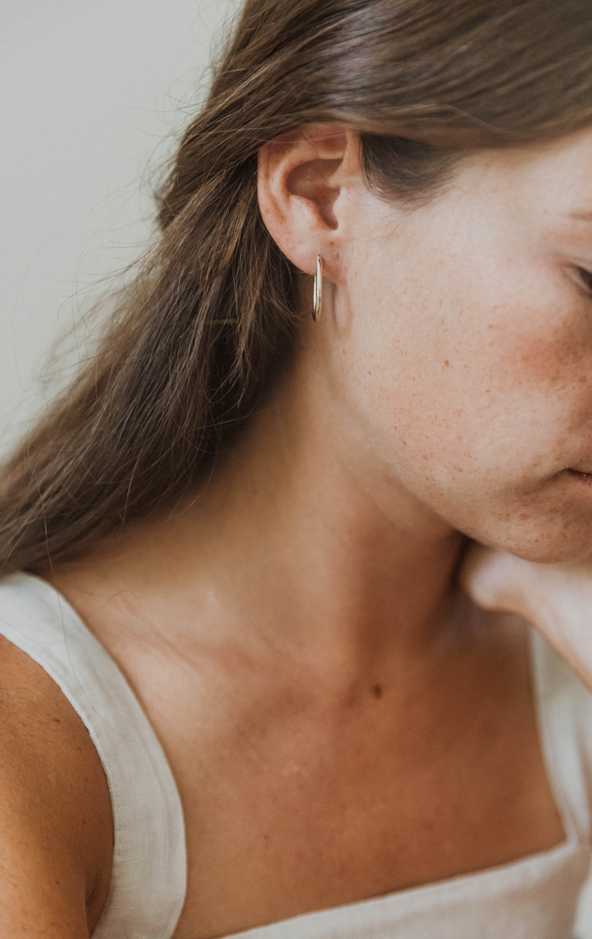 The kind of hoop that feels really special but pairs perfectly with denim and a white t-shirt.