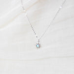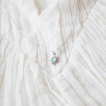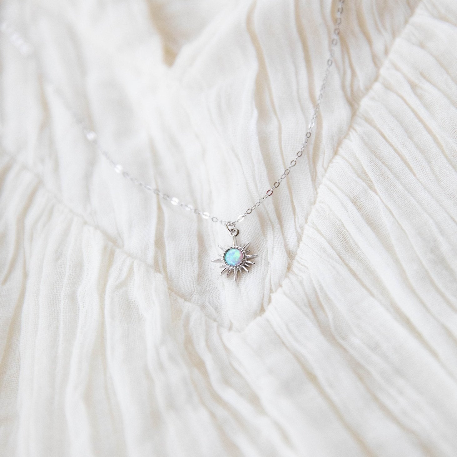 An oh so dainty and tiny squared white opal 5mm charm, tightly clamped in a silver sun setting. So reflective and stunning in the sunshine. The perfect mood lifter.