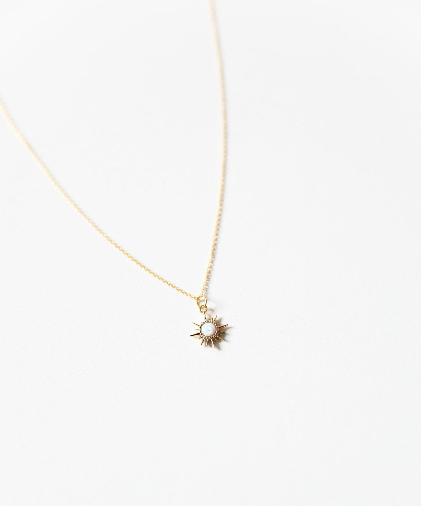 An oh so dainty and tiny squared white opal 5mm charm, tightly clamped in a gold sun setting. So reflective and stunning in the sunshine. The perfect mood lifter.