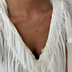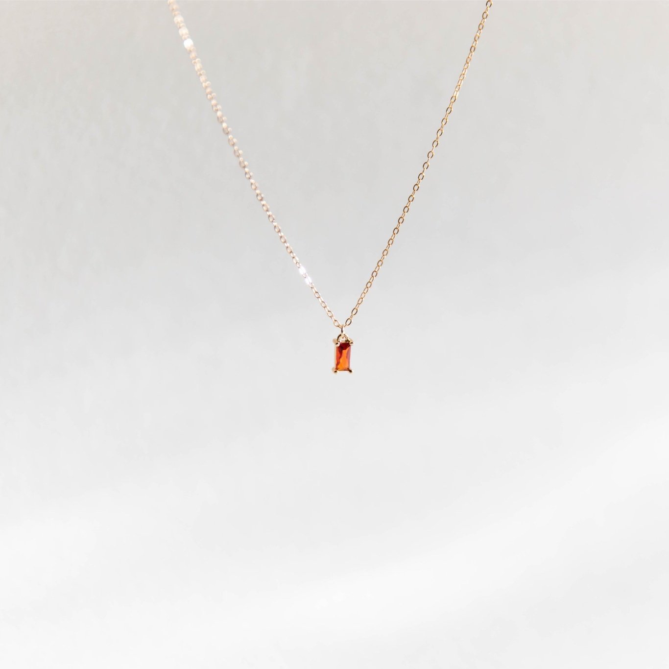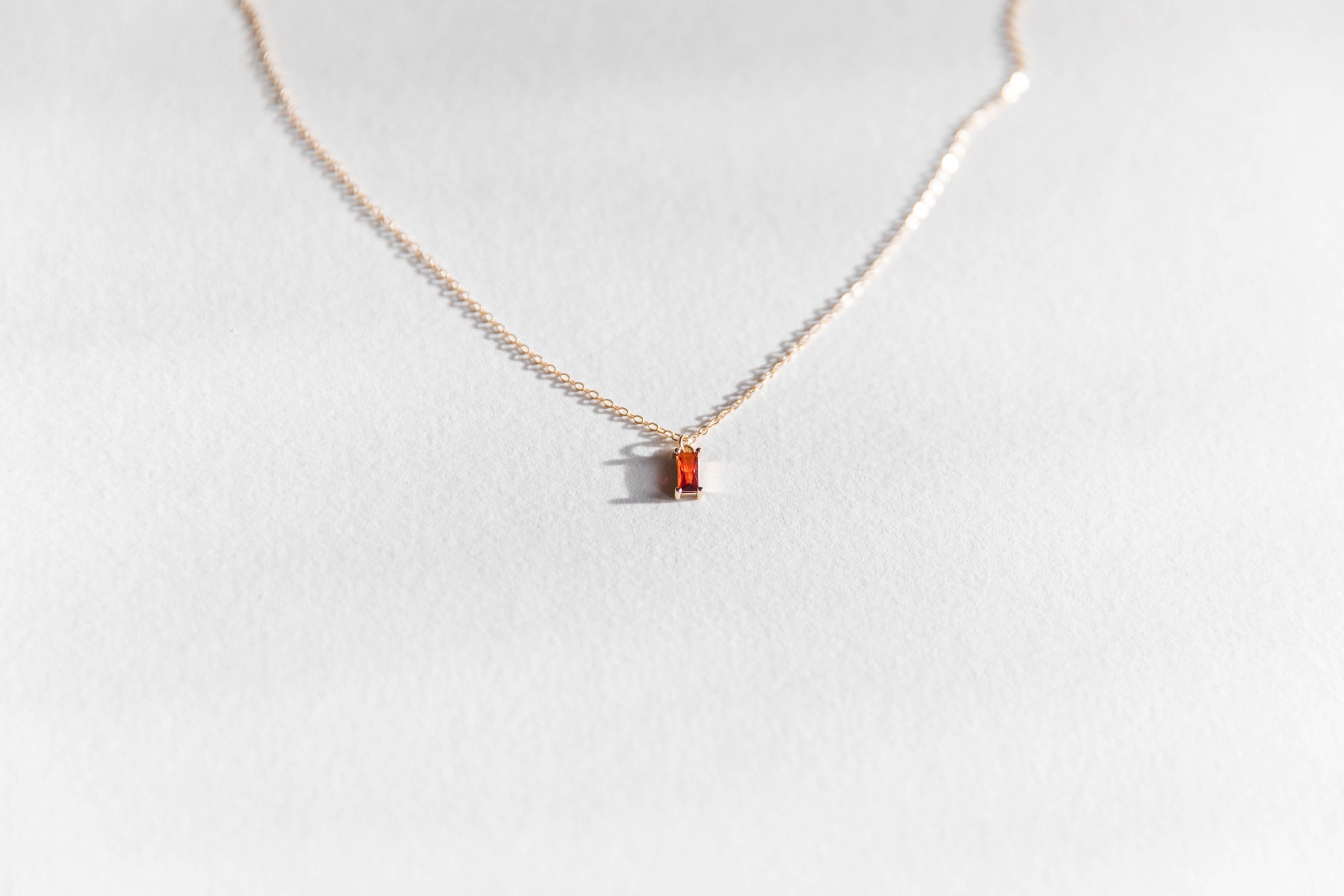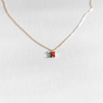 The Fate pendant highlights special moments with an air of destiny. A sunset stone necklace in a minimal setting for everyday comfortable wear and effortless layering