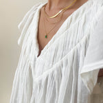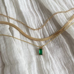 Three different chain textures and the gorgeous dainty emerald green pendant for an effortless addition to your everyday outfits.