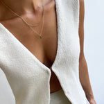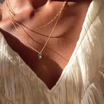 Our classic Colette Necklace and our beloved emerald green Kismet pendant stacked for an effortless addition to your everyday outfits.