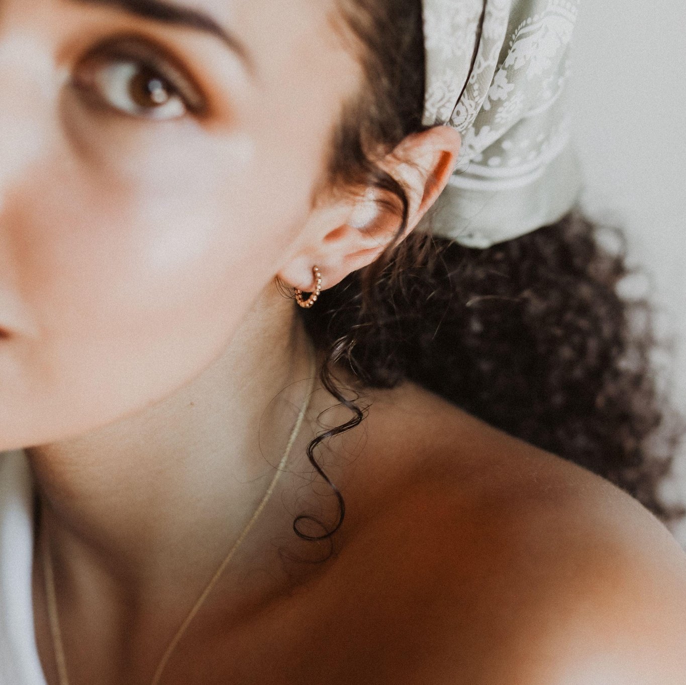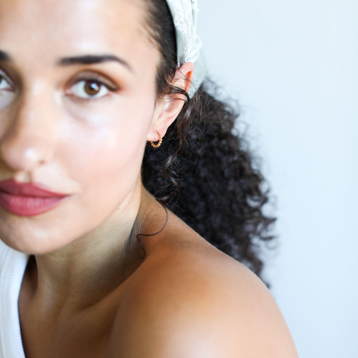 Babe! These Cyra Hoops are amazing. I’m obsessed with how easy they go from casual day to dressy night. On top of that, being water and sweat friendly is a goddess send! I have worn them constantly since they arrived, switching between piercing places to match my day. I’ve received tons of compliments and I know you will too. Highly recommend.