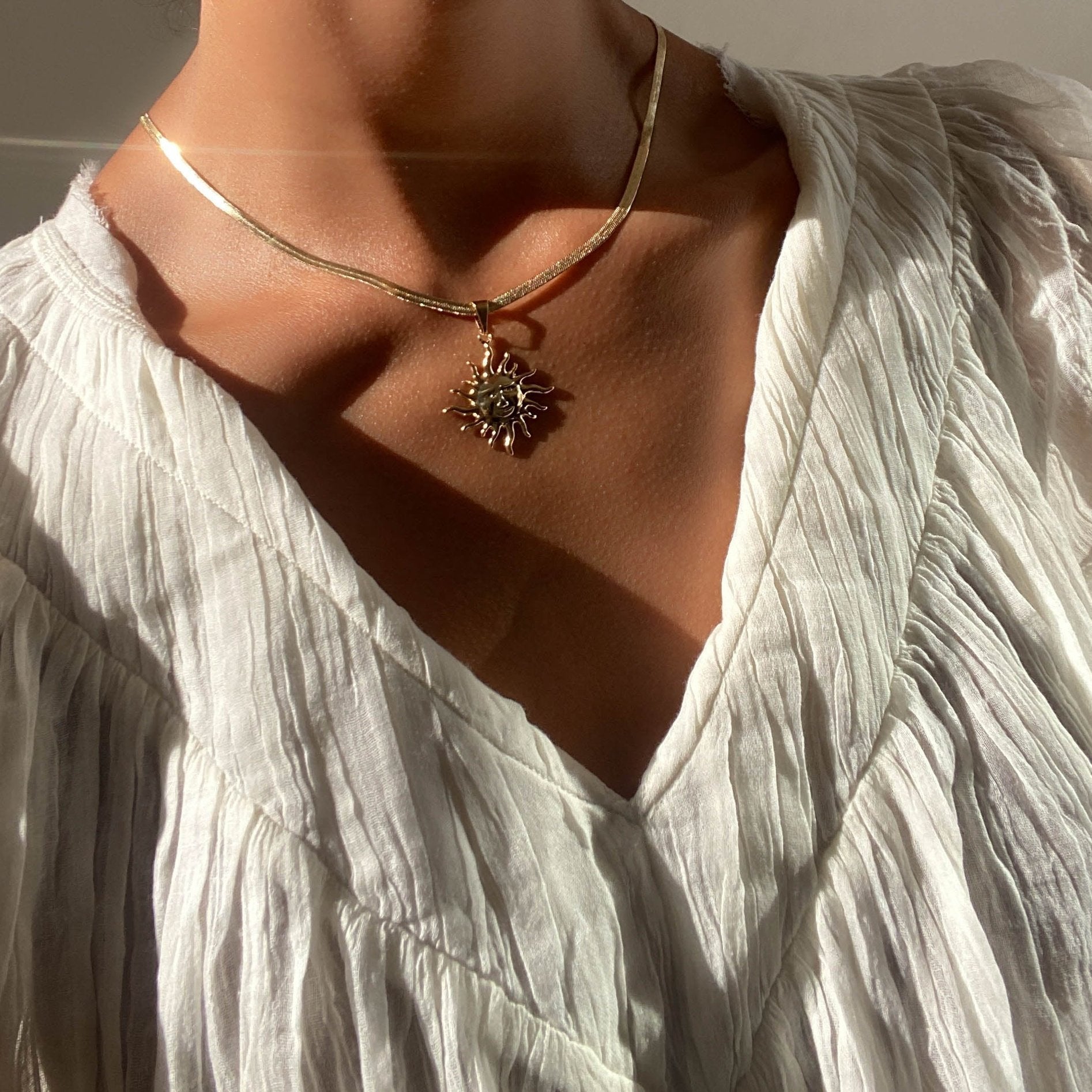 This one is for the sun lovers. The Riva necklace features a gorgeous sun pendant that catches the light and ads a stunning finish to any outfit. Crafted with precision, the pendant and necklace are both gold-filled—yet are also light and comfortable for everyday wear.